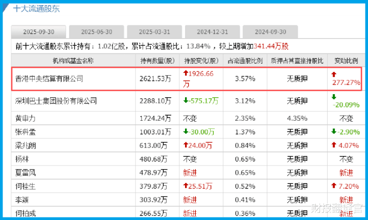 打开这份财报,第一个也是最引人注目的矛盾点出现了:报告期内,香港中央结算有限公司(代表北向资金)对其持仓大幅加仓了277%。